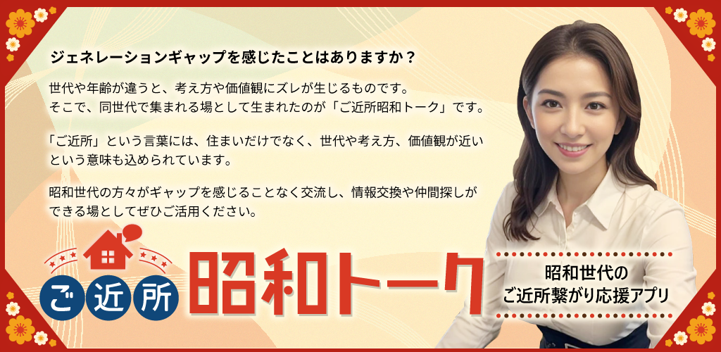 昭和世代のご近所さん達が変なギャップを感じる事なく交流を持て、情報交換をしたり、仲間を見つけたりする場所としてお使い下さい。